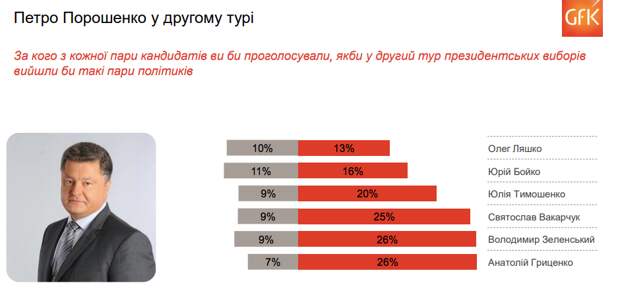 Еще в прошлом году среди политтехнологов Порошенко была популярна теория, по которой во второй тур с президентом было бы выгодно вывести кандидата от антимайдановских сил. Однако сейчас концепция кардинально поменялось. Как писалось выше, по данным соцопросов у Бойко есть шанс победить Порошенко во втором туре. Кроме того, с тех пор резко вырос рейтинг Тимошенко, которая, очевидно, выходит во второй тур выборов.